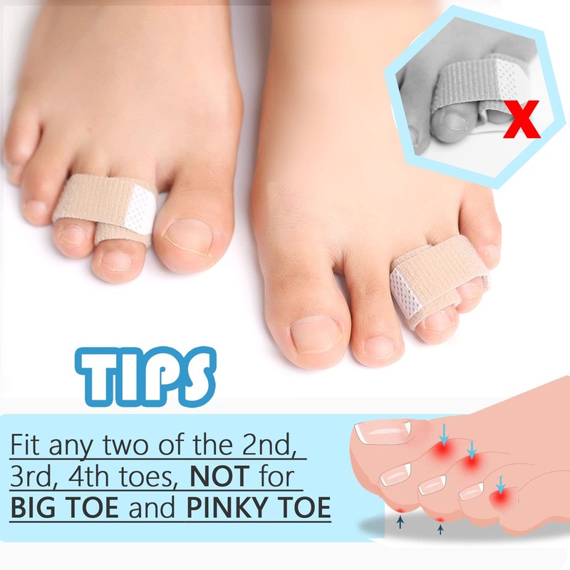 - STRAIGHTEN & PROTECT: toe straight wrap gently separate adjacent toes to reduce friction and irritation between toes. Can be worked as a toe brace splint to temporarily realign overlapping toes, hammer toes and crooked toes. As the bent toe is "straightened", further foot pain caused by rubbing against the shoe can be reduced. Thus, help your toe symptoms and promote healing.