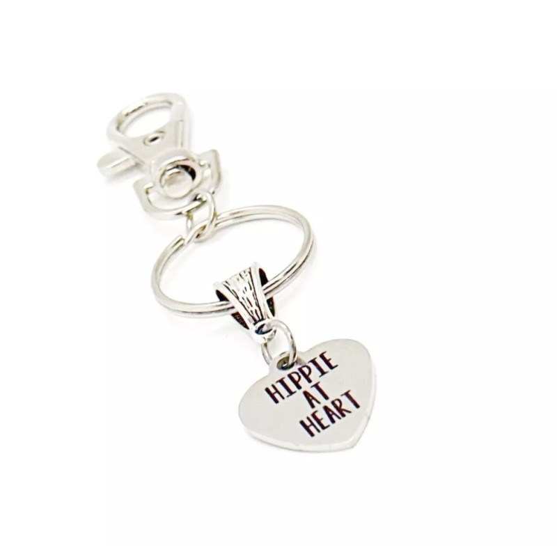 JKCE Designs Hippie At Heart Charm Clip On Keychain, Hippie Gift, Wife Gift, Husband Gift