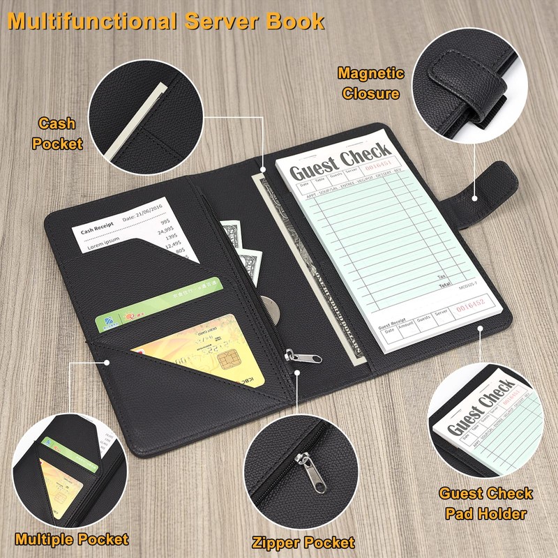 • Magnetic Closure: If you have ever lost coins, cash, receipts, or had a credit card slip out of your serving book, our server book with zipper pocket is perfect for you. Each serving book for waitresses features strong magnetic closure to keep all your work items organized and safely, say goodbye to frantically searching for the lost items.