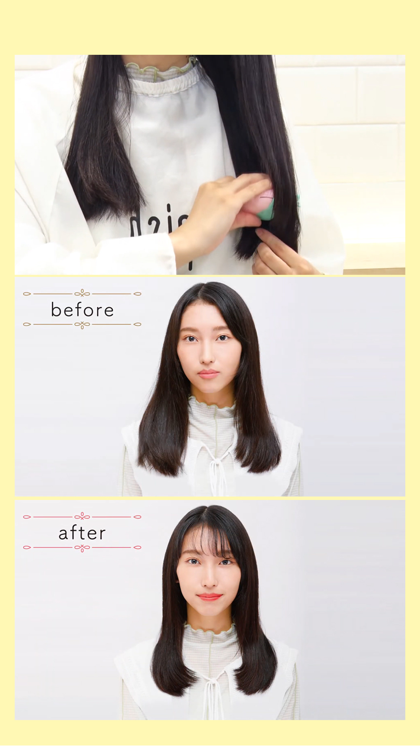 머리카락 전체의 길이는 거의 유지되면서도 볼륨 조절이나 무거운 느낌 제거, 층 표현 등에 효과적입니다.