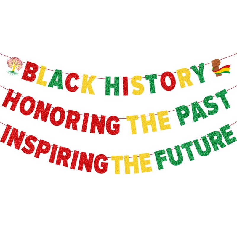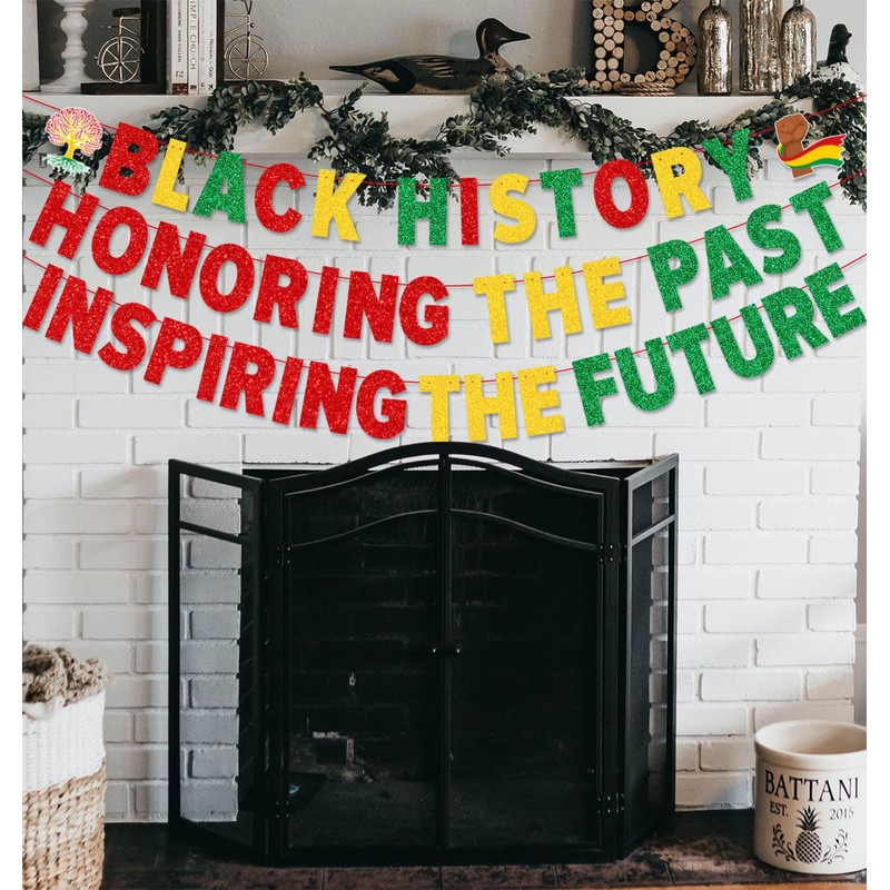 - WHAT YOU WILL GET - 1 set red yellow green glittery Black History Honoring The Past Inspiring The Future Banner, includes three separate strands, one says "BLACK HISTORY" with patterns, one says "HONORING THE PAST" words, and the other says "INSPIRIING THE FUTURE" words, which full of Black History Month party atmosphere.