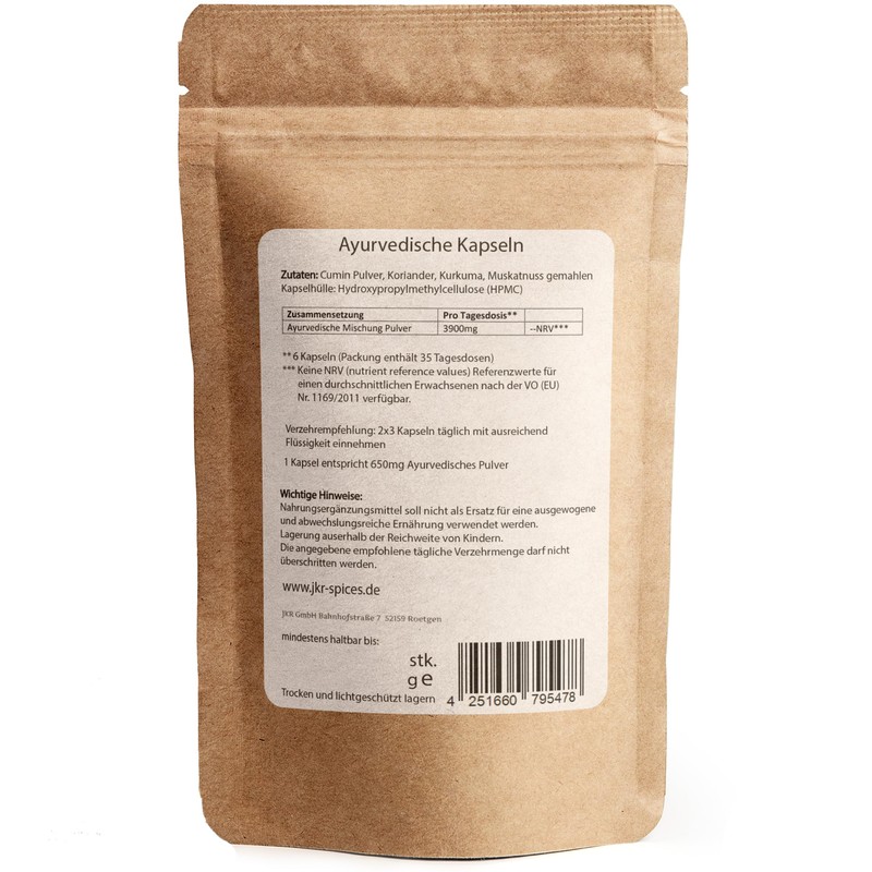 JKR Spices Ayurvedic Capsules, Pack of 210, Power Spice Capsules, Cumin Cumin, Coriander, Turmeric and Nutmeg, Traditional Ayurveda, CO² Neutral Packaging