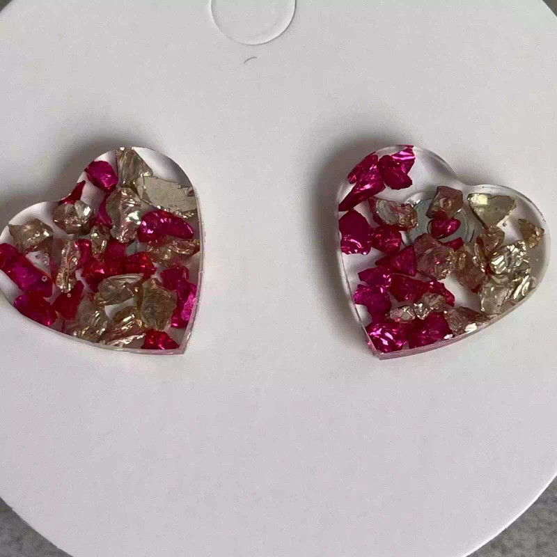 JLAdams Designs Heart Shaped Crushed Glass Stud Earrings