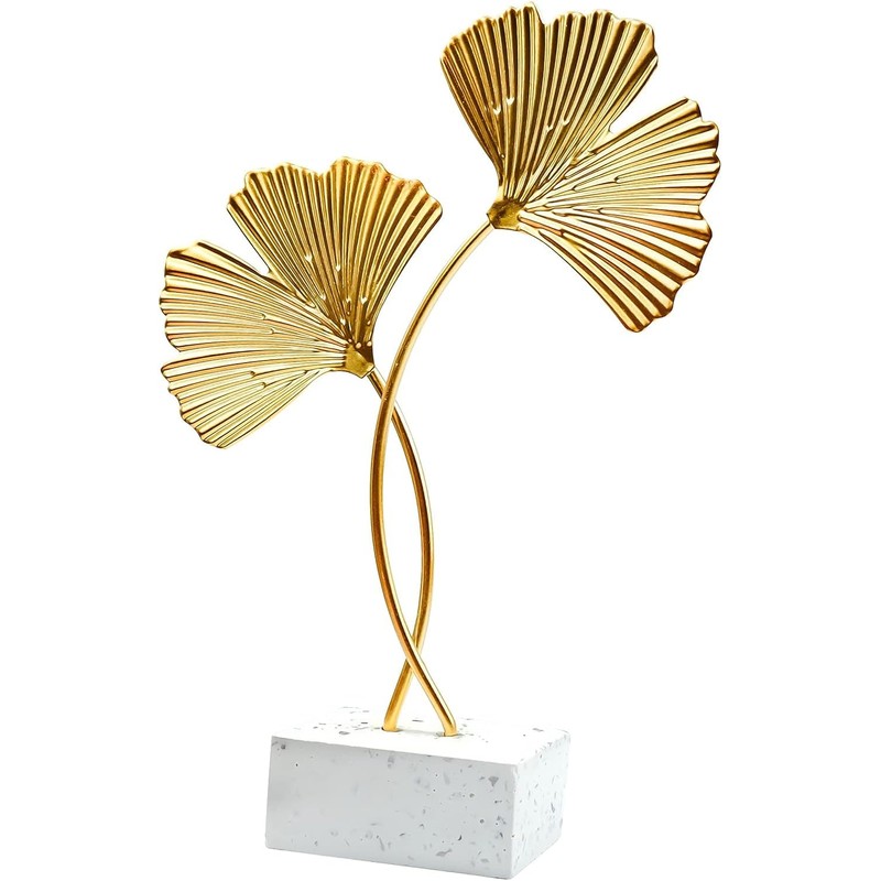 Metal Ginkgo Leaf Home Decor Statue, Modern Creative Collectible Figurines Decorative for Coffee Table Desktop Shelf Centerpiece, Gold Ginkgo Leaf Art Sculpture for Dining Room, Office, Study, Studio Decor Ornaments