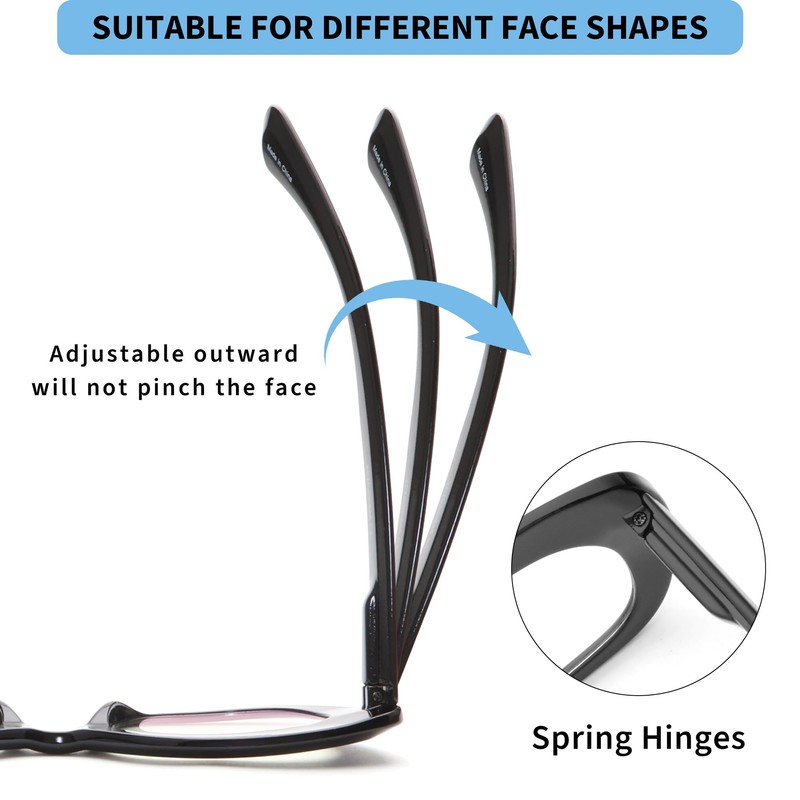 • 【Flexible Spring Hinge Frame】- Durable frame with adjustable spring hinge, suitable for long-term wearing and very comfortable, the frame with design sense is suitable for any occasion, and the universal size is suitable for most face shapes