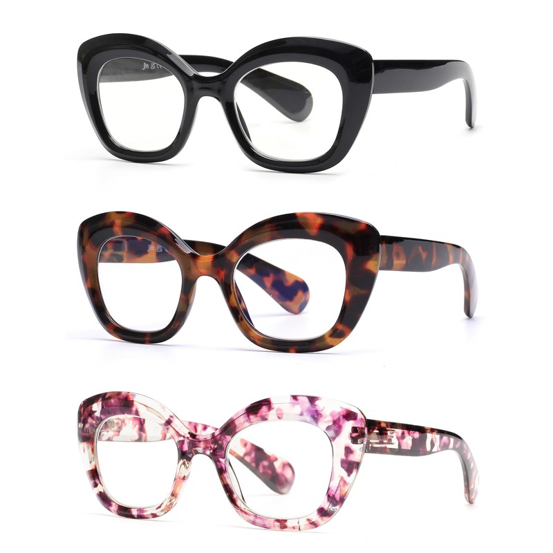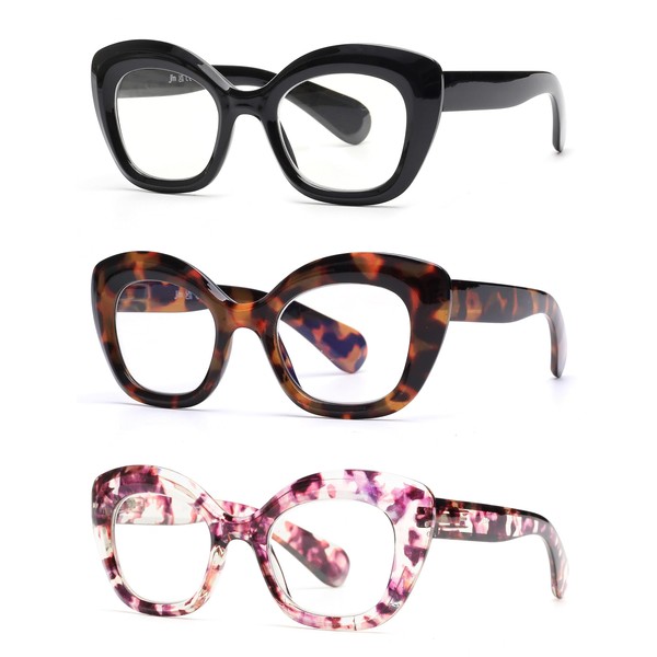 JM Set of 3 Lightweight Plastic Cateye Blue Light Reading Glasses for Men Women.