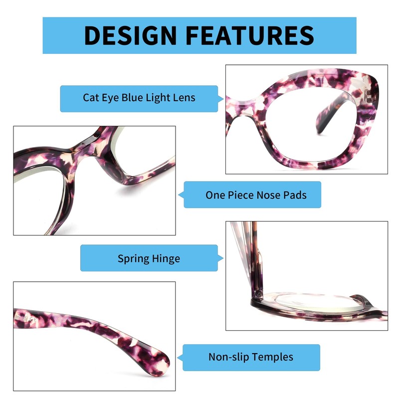 • 【Blue Light Blocking Reading Glasses】- Blue light filter lenses with UV400 protection, anti glare, only block harmful blue light to reduce visual fatigue and discomfort caused by browsing electronic screens such as mobile phones and computers