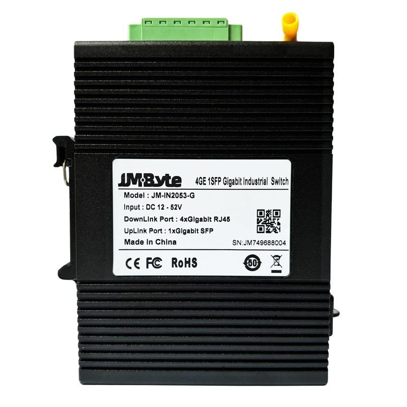 JM-Byte 5-Port Gigabit Industrial DIN-Rail Ethernet Switch, 4 Ports RJ45 10/100/1000Mbps Ethernet, 1 SFP Uplink, Unmanaged Network Switch, 10Gbps Switching Capacity, IP40 Rated (JM-IN2053-G)