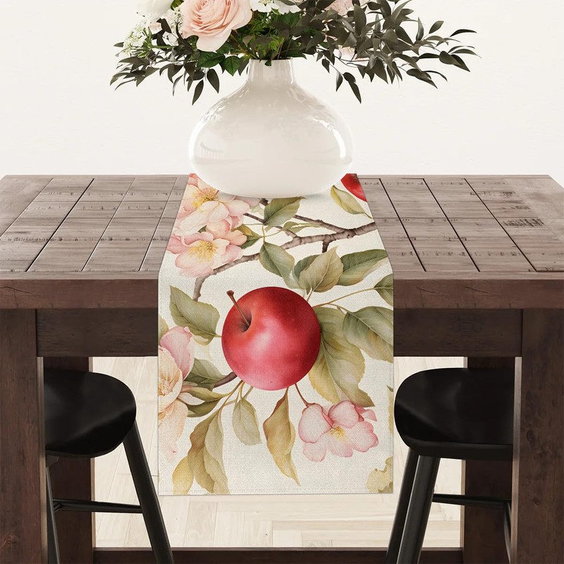 JMAVZWS Fruit Apples Flowers Table Runner 48 Inches Long Decorative Linen Table Runners Rustic Farmhouse Table Runner Seasonal Spring Home Decor 13 x 48 Inches