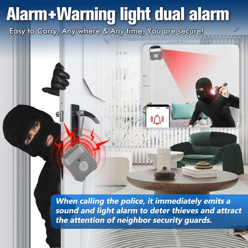- 7-in-1 Multi-Function Alarm for Complete Protection: The JMDHKK Smart Alarm offers seven security functions in one compact device: infrared alarm, light-sensing alarm, vibration alarm, warning light, SOS, illumination, and Bluetooth anti-lost feature. Perfect for all-around safety whether indoors or outdoors.