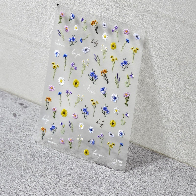JMEOWIO 3D Nagelsticker Bunte Blumen Nail Art Sticker Selbstklebend Nagelaufkleber 5D Stereoskopisch Frühlings Sommer Blumen Dekoration Nageldesign Zubehör 2 Blatt