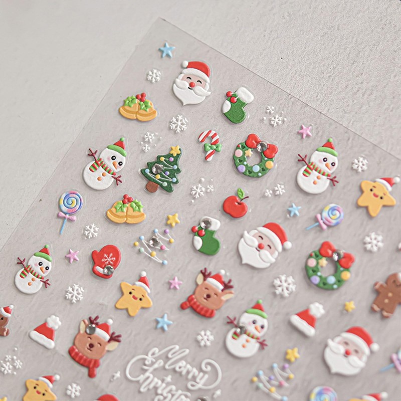 JMEOWIO 3D Nagelsticker Weihnachten Schneemann Nail Art Sticker Selbstklebend Nagelaufkleber 5D Stereoskopisch Dekoration Nageldesign Zubehör 1 Blatt