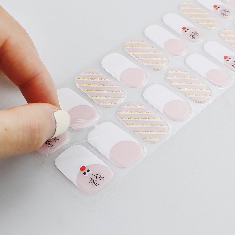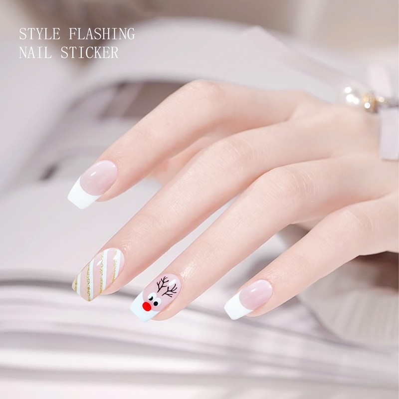JMEOWIO Gel Nail Stickers Christmas Cute Glitter Cream Pink Semi Cured Gel Nail Strips Wraps UV/LED Nail Supplies Nail Art Design Decoration Accessories