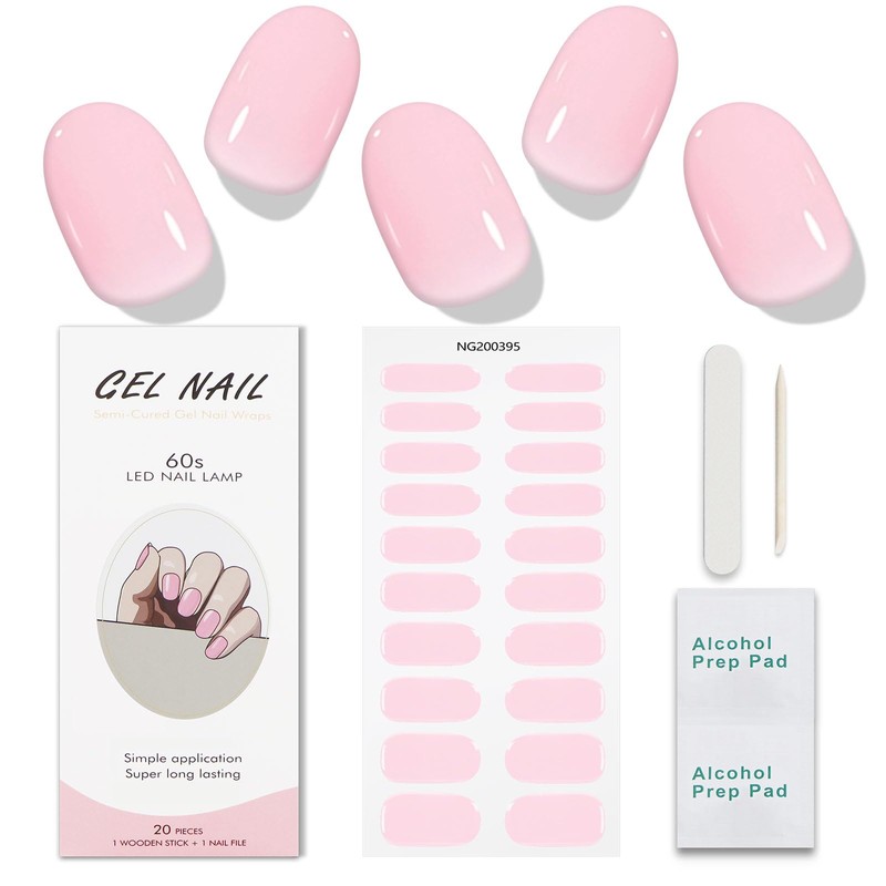 JMEOWIO Gel Nail Stickers Cream Pink Semi Cured Gel Nail Strips Wraps UV/LED Nails Art Design Decoration Accessories