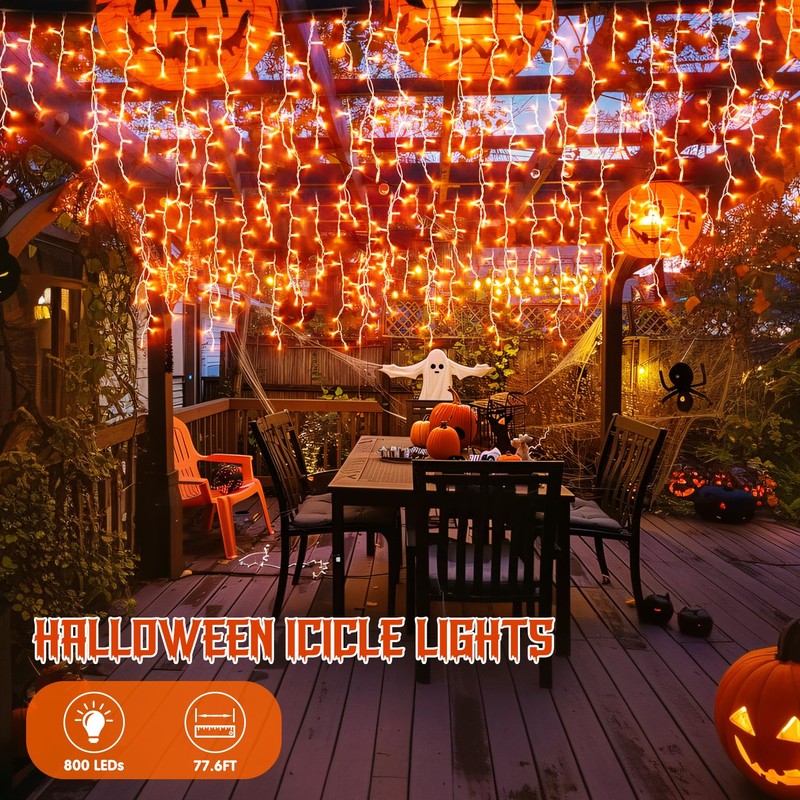 - 【Long Halloween Icicle lights】 Hang the Halloween and fall decor icicle lights on the eaves, fence of garden, fireplace of living room, or anywhere you want. Better yet, super long Halloween icicle lights saves you from the headache of connecting the lights one by one, which is also enough to cover a larger area for Halloween decor.