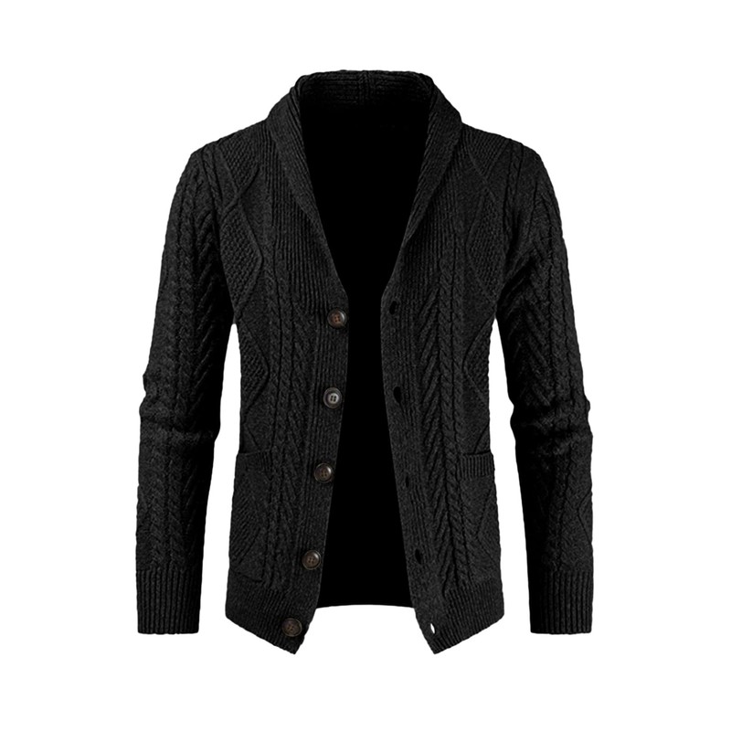 JMIERR Men's Cardigan Sweaters Fall Casual Long Sleeve Shawl Collar Button-Down Wool Blend Cable Knit Sweater with Pockets,XL,Black