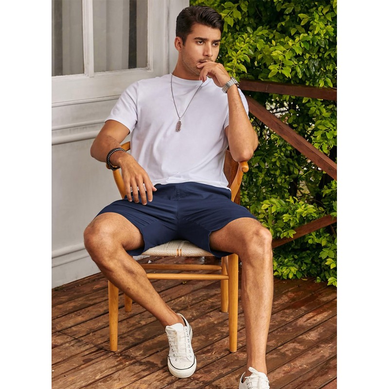 Jmierr Men's Summer Chino Shorts, Cotton, Elastic Waist, with Pockets, blue