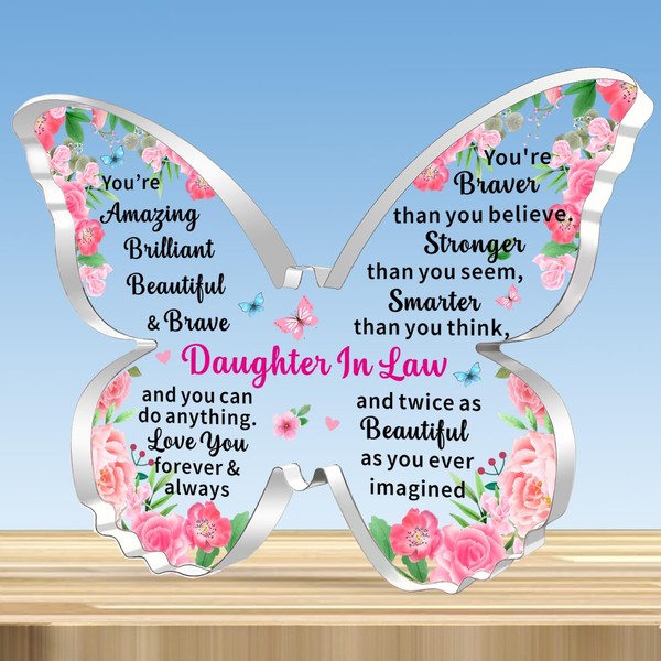 JMIMO Daughter In Law Gifts Inspirational Butterfly Shaped Acrylic Plaque for Daughter In Law Christmas Birthday Gifts Keepsake