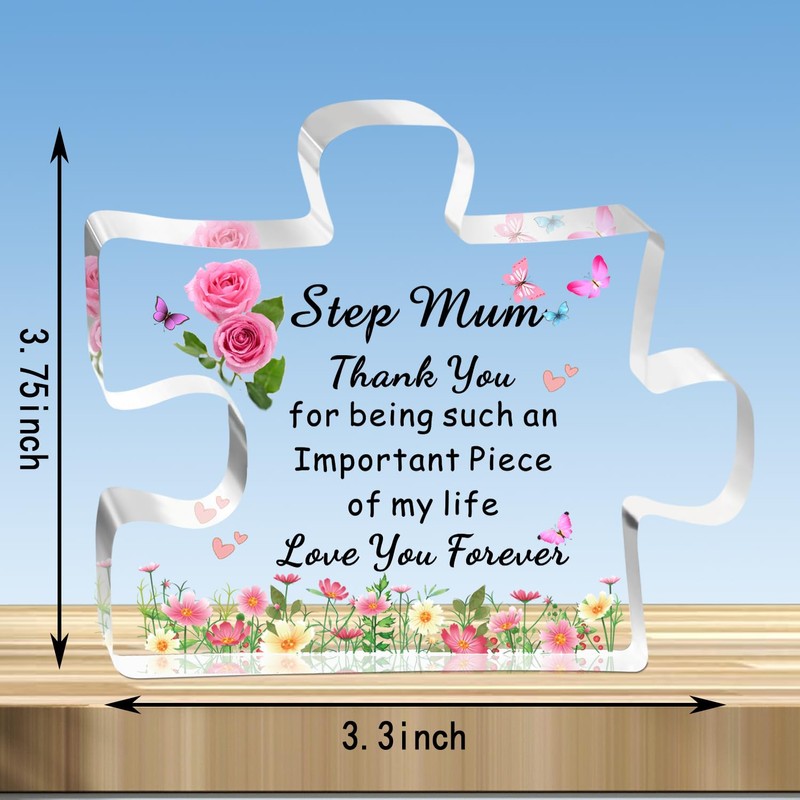 - 1.【Step Mum Gifts】:The step mum plaque gift with the sweet words:"Step Mum, thank you for being such an Important Piece of my life. Love You Forever. "Convey your love to your step mum with a unique gifts.
