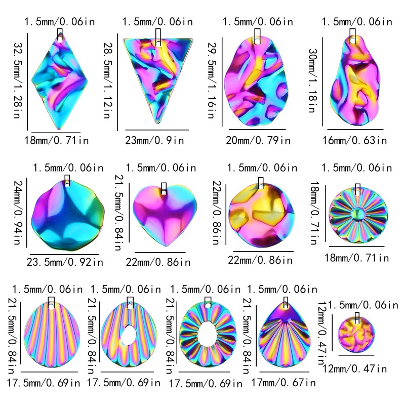 - PACKAGE CONTENT: The package includes totally 26pcs rainbow color geometric shape blanks earring charms in 13 styles, each style 2pcs; mixed styles can meet various craft needs, giving you multiple choices.