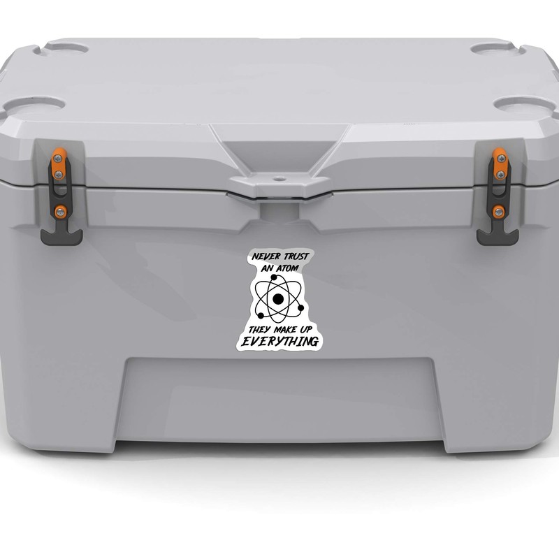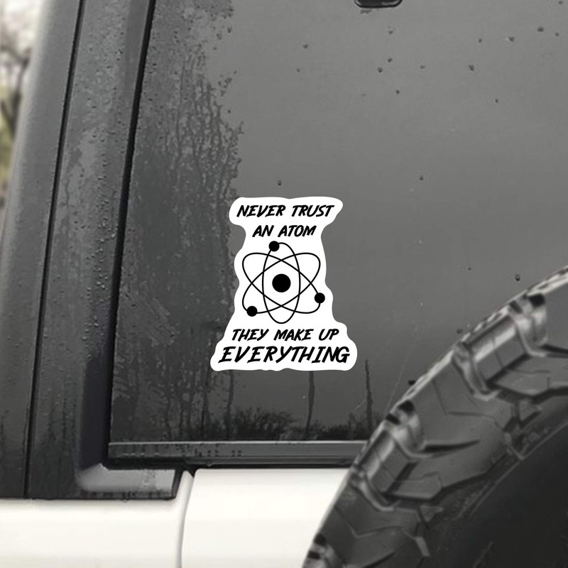 JMM Industries Never Trust an Atom They Make up Everything Decal Science Cute Funny Motivation Inspiration Quote 4.6-Inches by 5.5-Inches Premium Quality Vinyl Sticker UV Protective Laminate PDS2111