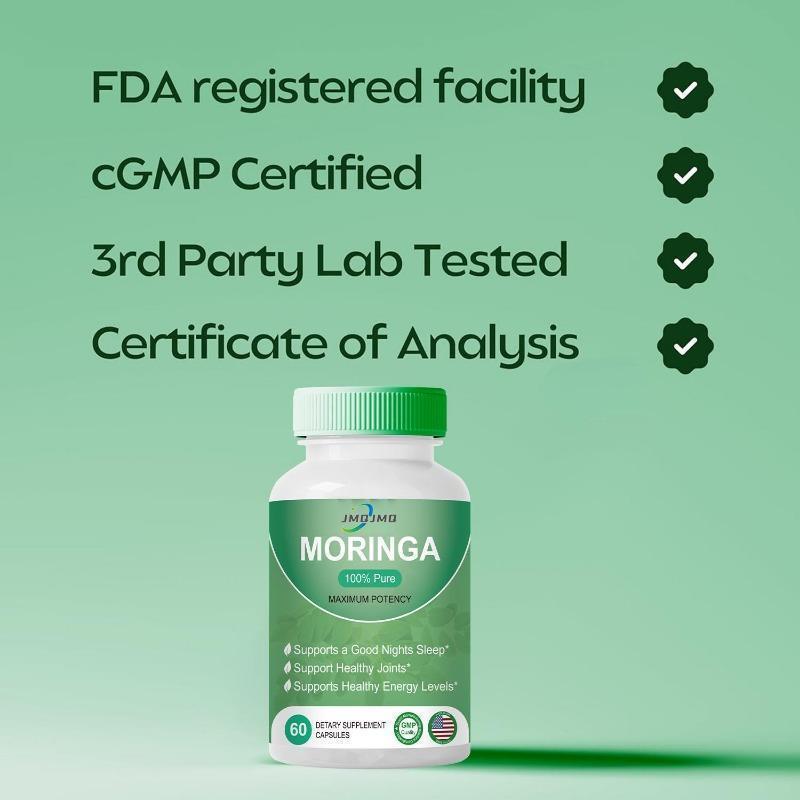 JMQJMQ 800mg Moringa Supplement for Immune Support, Gut Health, Vitamins A & B Vitamins, Natural Green Antioxidant, Supports Energy & Skin Health - Colour: 1bottle