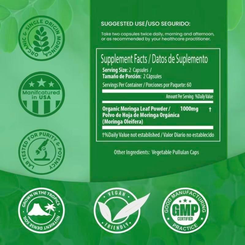 Elevate your health with 800mg Moringa, a natural green antioxidant superfood that supports your immune system, gut health, and energy levels.