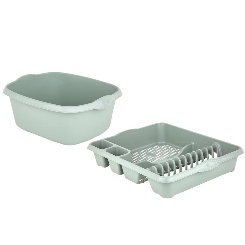 JMS we create smile 2 PIECE KITCHEN SET - LARGE DISH DRAINER & RECTANGLE WASHING UP BOWL (Silver Sage)