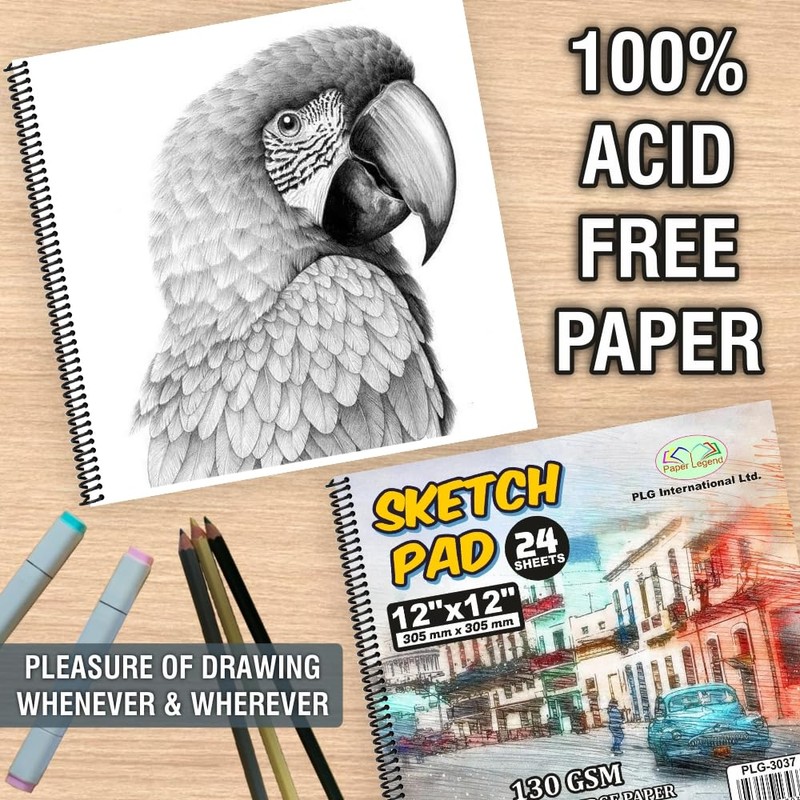 Mega Deal Set- You will receive sketchbook and Professional Pencil set of 12. Our sketch book is attached using a sturdy ring binding, which can protect the paper when turning pages. The acid-free paper for artists will help preserve the vibrancy of your piece. Featuring robust, tactile, soft touch covers front and back . Made up of 130 GSM White Cartridge Paper, this is perfect for sketch pencils but can also be used with pens and pastels. Resists bleed-through & fading. 12 Pencils Set- Made of high quality wood and graphite, Anti-Fracture Tough Enough, Writing Delicate, Pencils are Sturdy, Hexagonal Shape, The Graphite Is Even, Smooth Lead, Blends Easily. BEST GIFT- An extremely useful set of pads and pencils that can be used for all craft and creative activities. Great for when on the move or travelling with kids. Ideal for sketching, doodling and drawing