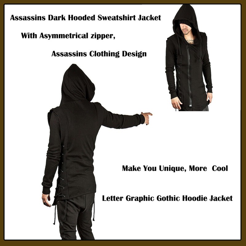 - FASHION HOODED SWEATSHIRT: This Assassin Costume Jacket solid hoodie coat for men. Fashion gothic style, regular type, slim fit, thick enough to keep your warm in cold.
