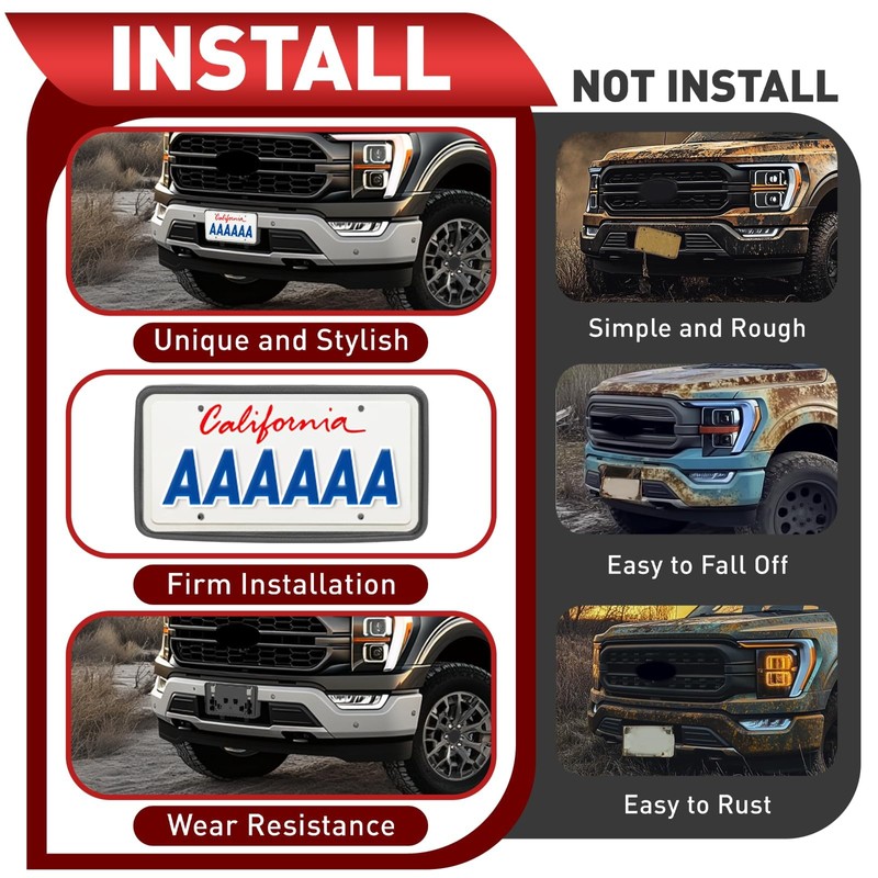 - Aesthetic Upgrades: The license plate bracket brings an appearance upgrade to your vehicle, with a practical, rustic look that complements the rugged style of the pickup truck with its unfinished black surface
