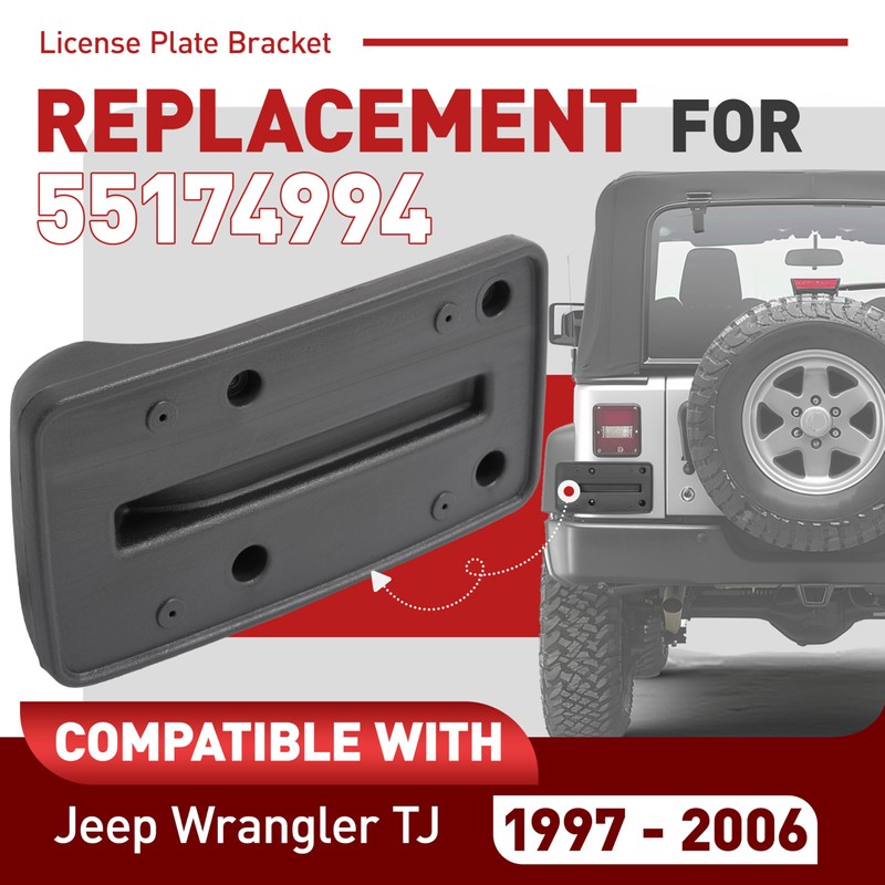 - Vehicle Compatibility:The rear license plate bracket is compatible with 1997-2006 Jeep Wrangler TJ. Replacement for 55174994. Easily and directly replaceable for a secure and stable installation