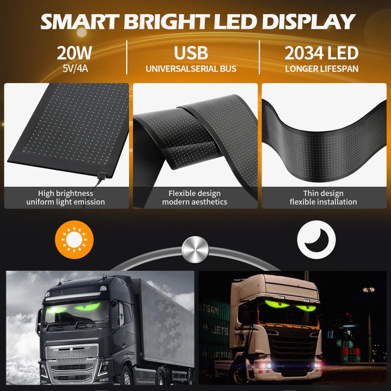 Customizable LED Eyes for Car: These eyes led lights for cars let you create unique messages, animations, or patterns via mobile app. display your name, or holiday themes. Transform your demon eyes light for cars into a moving billboard
