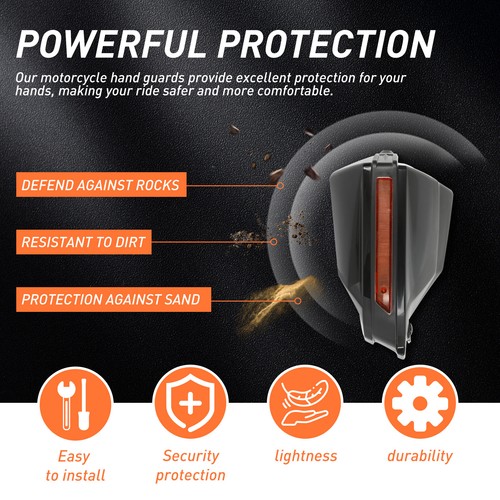 【Premium Material】The motorcycle handguards are made of stainless steel that provide superior durability and extreme wear resistance, making your motorcycle look more stylish and elegant.【Preferably Protect Hands】Motorcycle guard is a good partner for your daily use, especially for winter driving. Protect your hands from brush, rocks, mud and cold wind. Keep your hands warm and dry while riding with enough room for brake cables control and other devices.