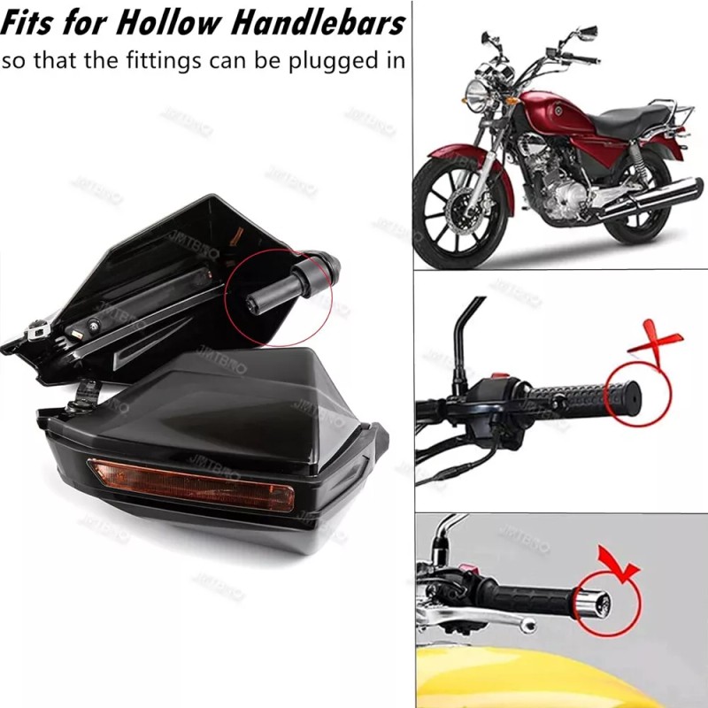 These handguards are universal and fit most motorcycles. Fit All handlebars mount range 7/8 inch 22 MM. However, before purchasing, make sure your motorcycle has hollow handlebars so that the fittings can be plugged in.