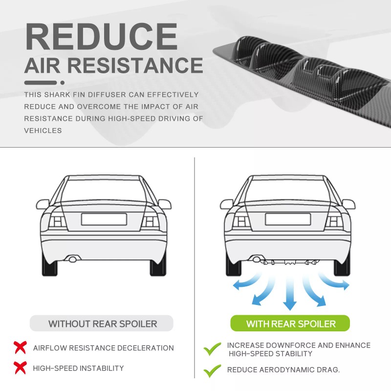 1 x Rear Shark Fin Bumper Diffuser (with adhensive tape & screws)