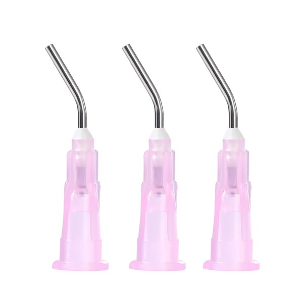 JMU 100Pcs Bent Dispensing Tips 18g, Blunt Tip Dispensing Needle, Dental Pre Bent Disposable Oral Irrigation Needle Tips, Pink