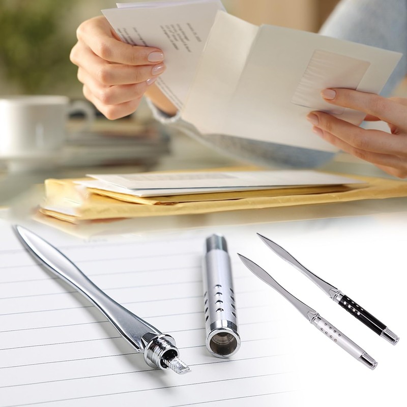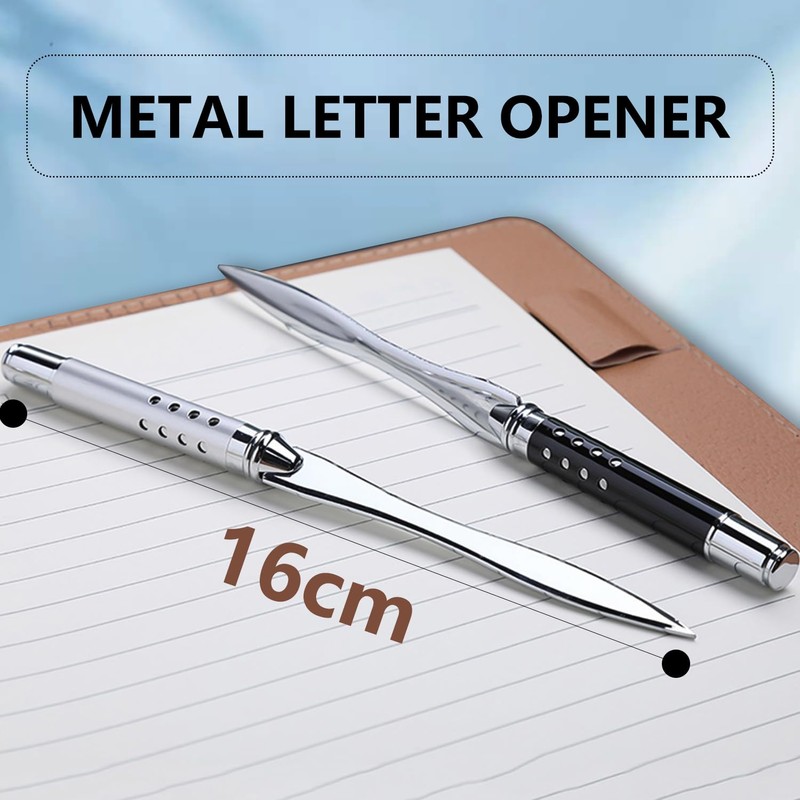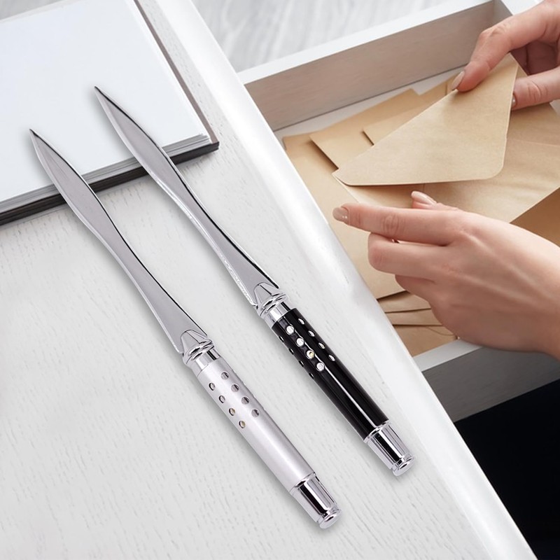 JNAWA 2Pieces Letter Opener Metal Black and Silver Envelope Packages Cutter Lightweight and Portable Paper Opener for School Office Home Use