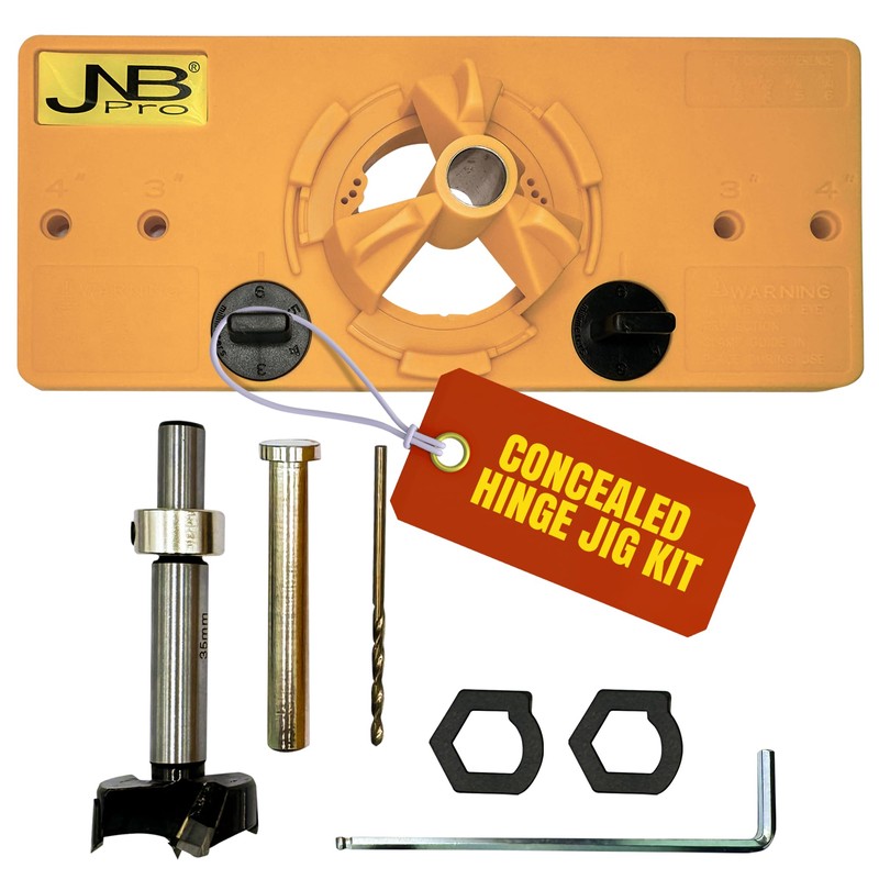 JNB Pro Concealed Hinge Jig Kit with 35mm Carbide Drill Bit, Hidden Door Hinge Template, Cup/European Style Hinges Easy Installation Tool for Kitchen Cabinet Doors