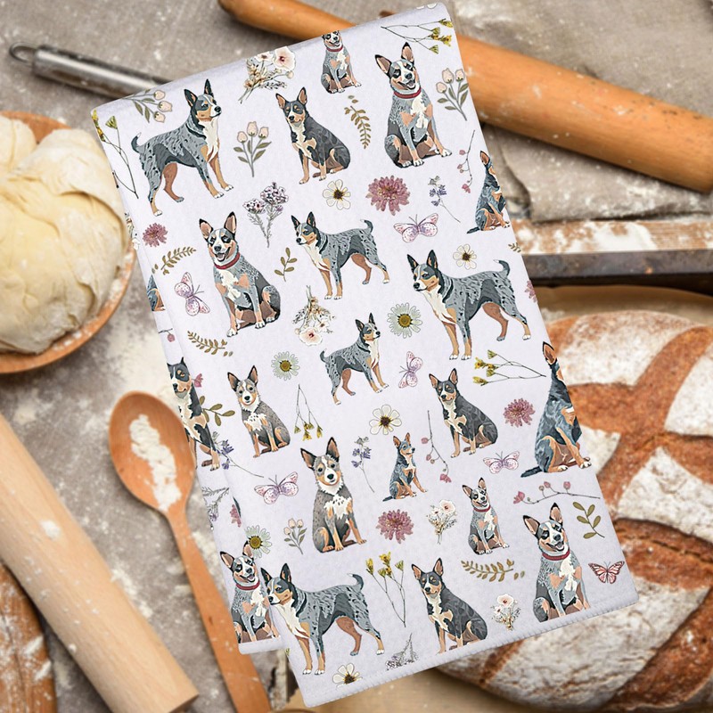 JNIAP Blue Heeler Kitchen Towels Blue Heeler Gift Australian Cattle Dog Gifts Blue Heeler Hand Towel (Blue Heeler kt)