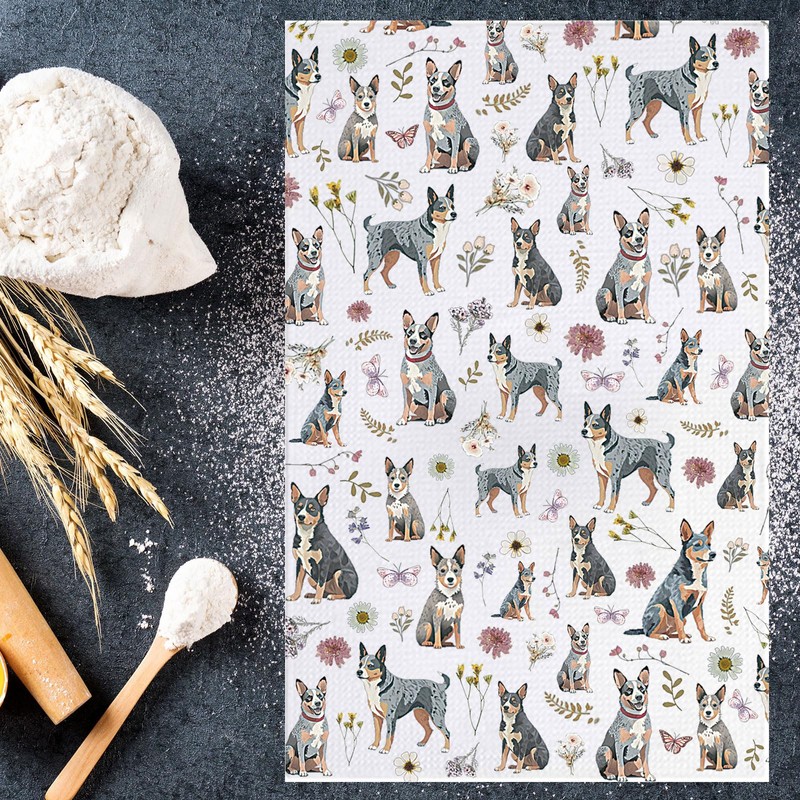 JNIAP Blue Heeler Kitchen Towels Blue Heeler Gift Australian Cattle Dog Gifts Blue Heeler Hand Towel (Blue Heeler kt)