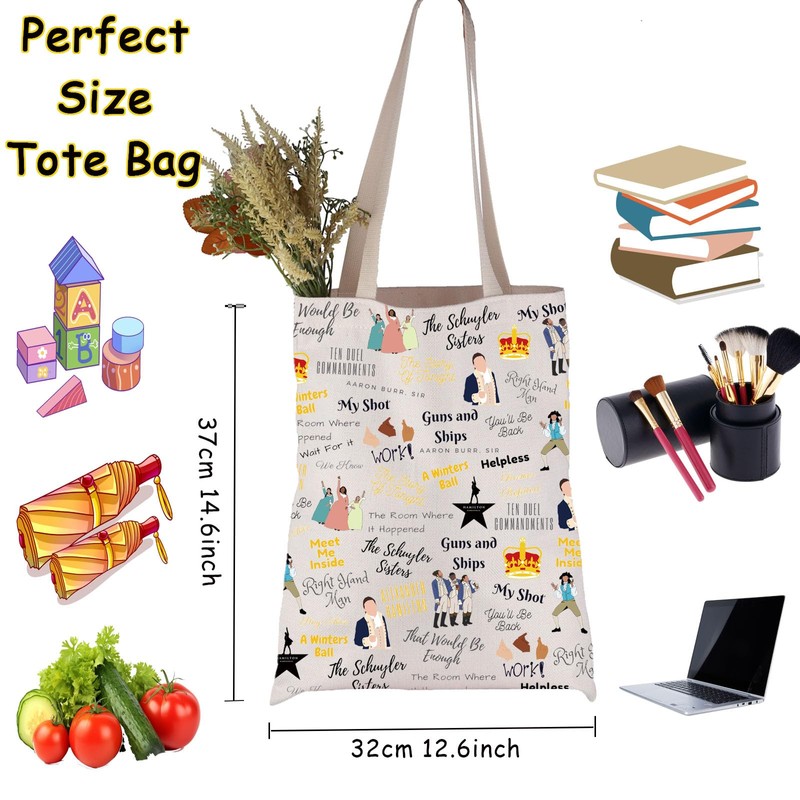JNIAP Hamilton Broadway Musical Tote Bag Hamilton Character Gift For Musical Fan (Ham-ilton Musical Tote Bag)