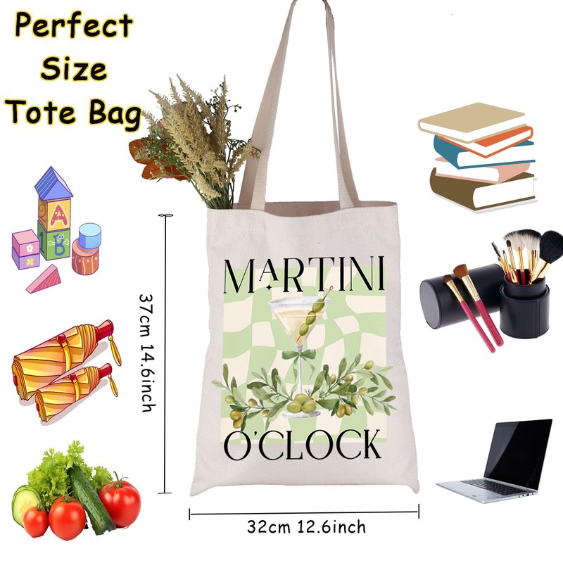 JNIAP Martini Lover Gift Martini o'clock Tote Bag Dirty Martini Cocktail Gift (Martini O'clock Tote Bag)