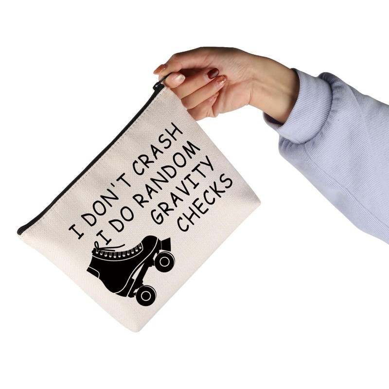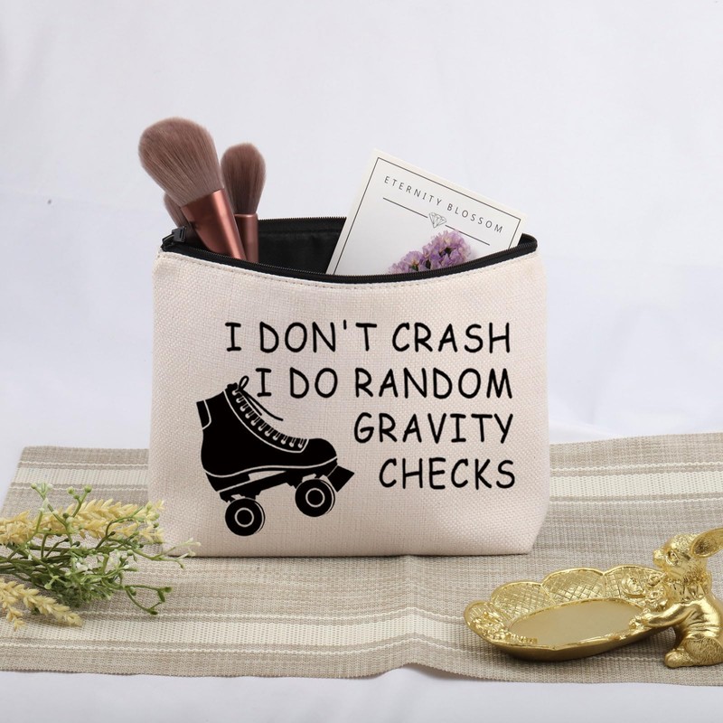 JNIAP Roller Skate Gift I Don't Crash I Do Random Gravity Checks Cosmetic Bag Roller Girl Gift (I Don't Crash Bag)
