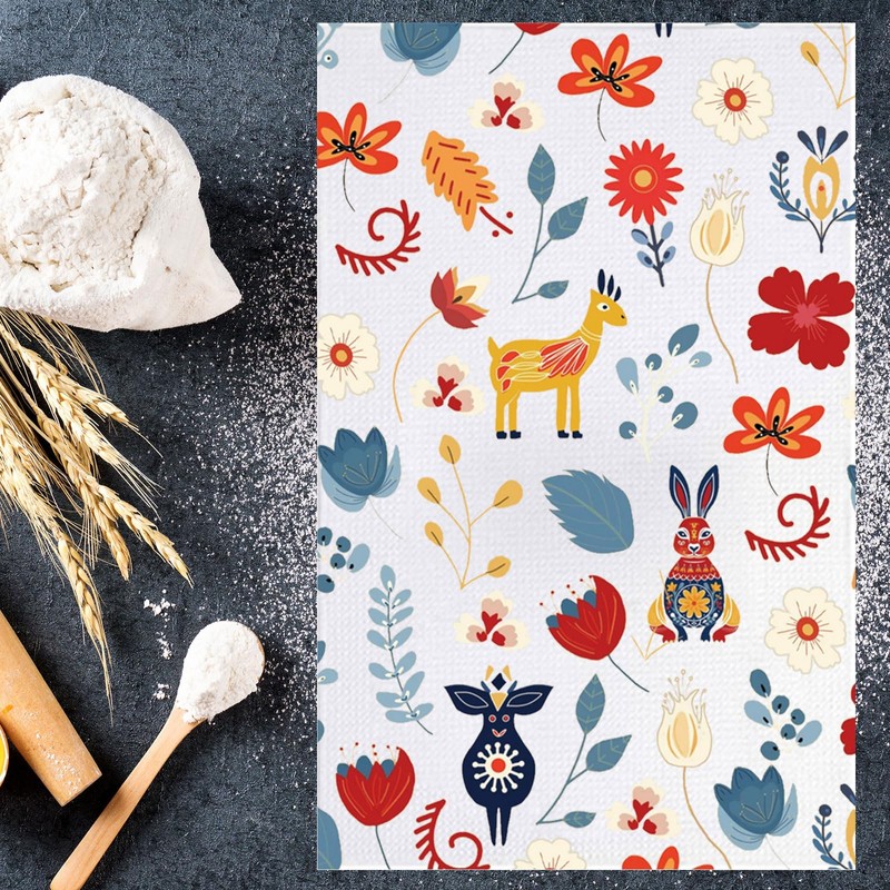 JNIAP Scandinavian Kitchen Towels Scandinavian Folk Art Towel Scandinavian Folk Art Gifts Scandinavian Dish Towels (Rabbit Deer kt)
