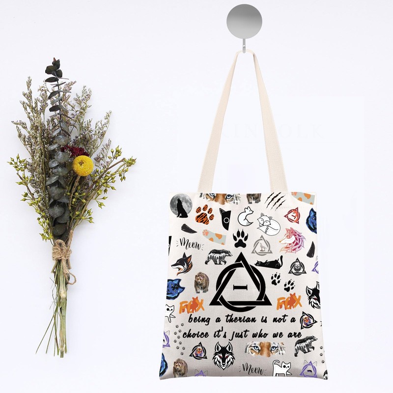 JNIAP Therian Tote Bag Therian Gift Therian Symbol Shoulder Bag Being A Therian Is Not A Choice It's Just Who We Are Tote Bag, Therian Tb, Large