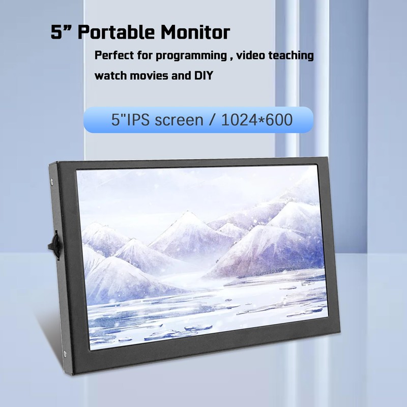 - 🍓 Full HD Portable Monitor - 5inch portable laptop monitor with 1024*600 resolution, advanced IPS glossy screen support 178° full viewing angle, it renders accurate and bright color, draws you into the video or game with lifelike colors and amazing detail.It can effectively reduce blue light radiation damage, no flickering, eye-care, and make it easier to watch for a long time.