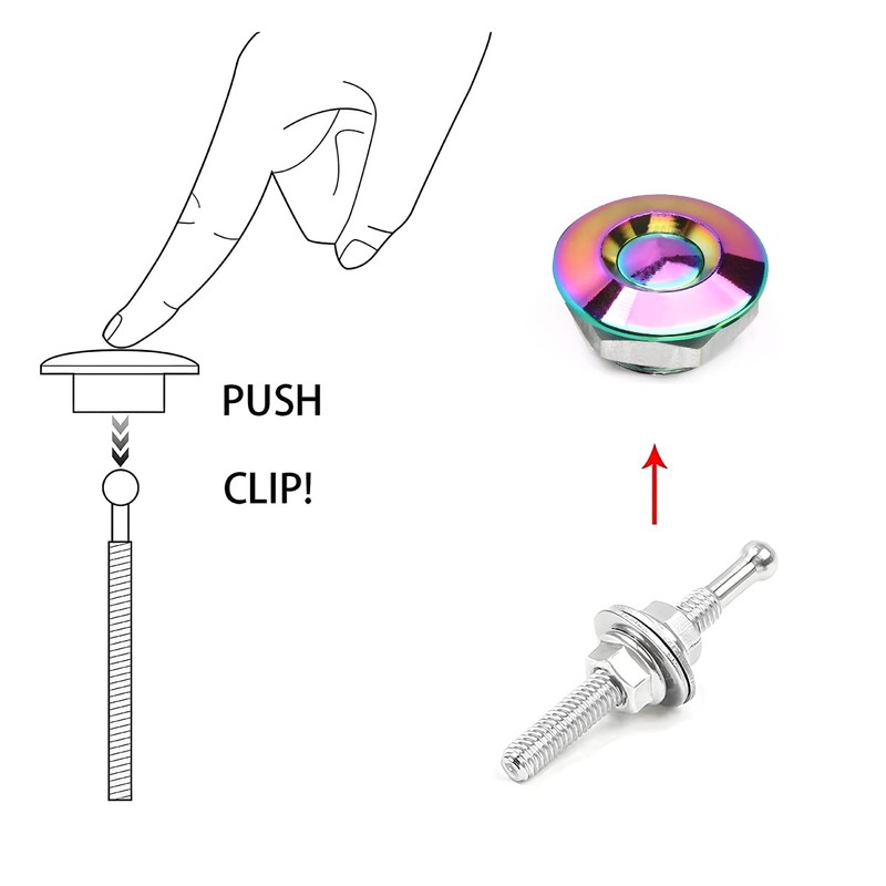 - Multifunctional push button lock that prevents the bonnet from vibrating when shaking or rotating, and gives the car a sense of luxury and style.