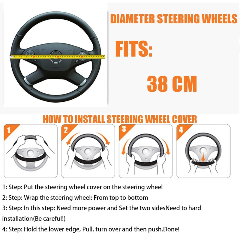- Suitable for medium size steering wheels up to 37-38 cm. Our steering wheel cover is not only beautiful and non-slip, it is the perfect decoration for your car to make your car stand out!