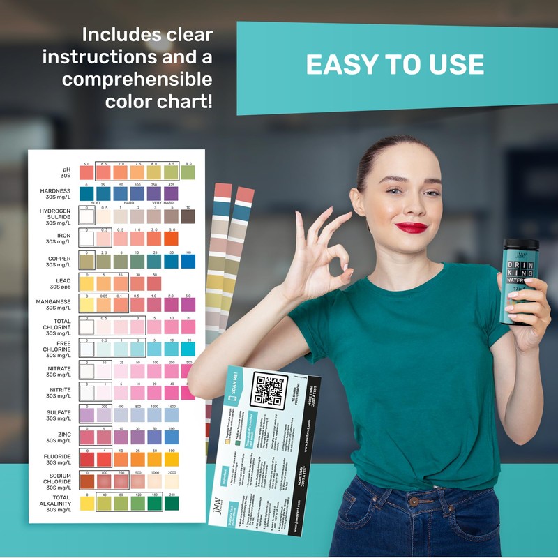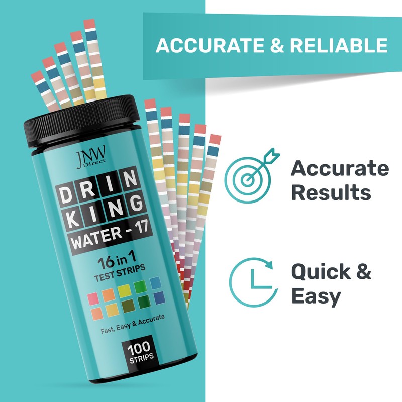 JNW Direct 17-in-1 Drinking Water Test Kit - 100 Strips + 2 Bacteria Tester Kits - Well, Tap, Home, City Water Testing Strip for Lead, Alkaline, Chlorine, Hardness, Iron, Fluoride, Copper & More